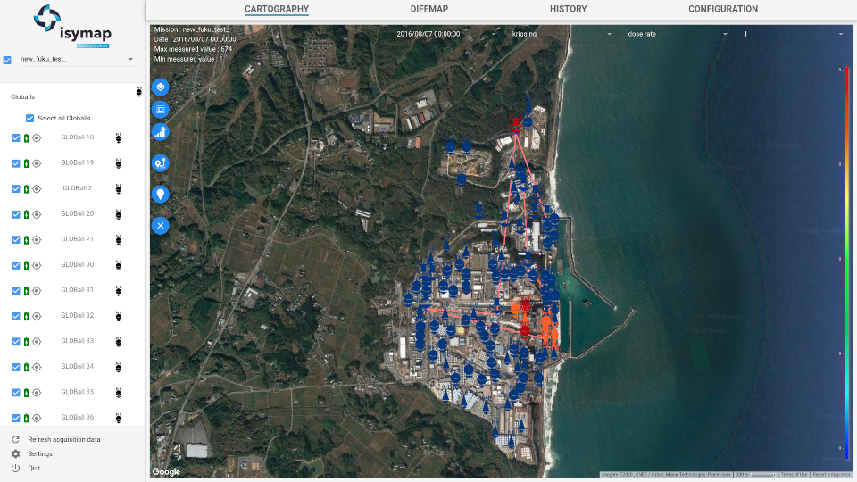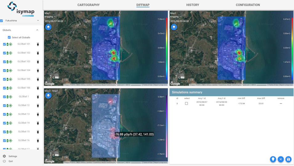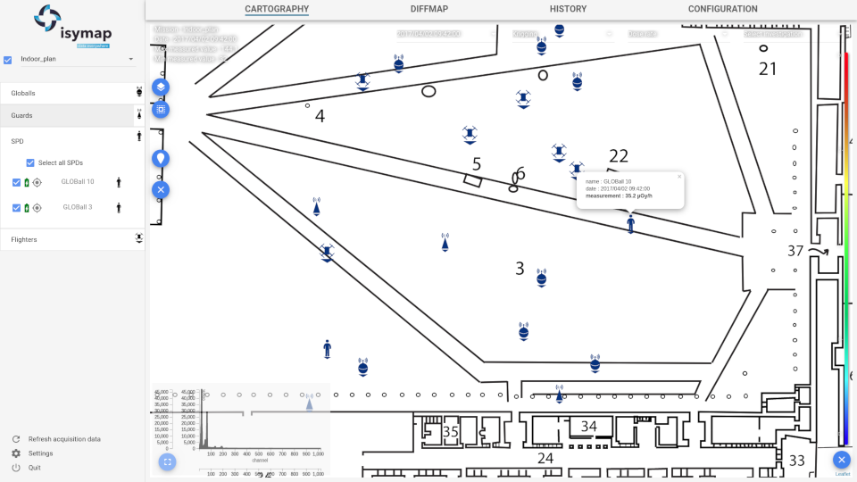 D’utilisation simple et intuitive, ISYmap permet d’appréhender rapidement une situation et d’en suivre son évolution. Des fonctionnalités additionnelles permettent d’optimiser la dosimétrie des opérateurs en cas d’intervention.